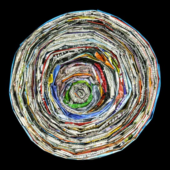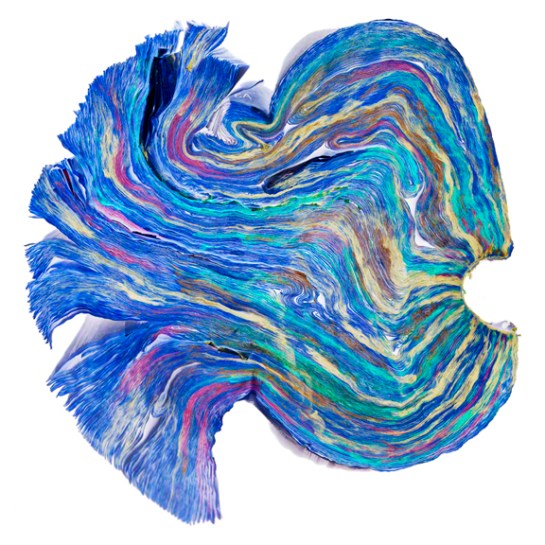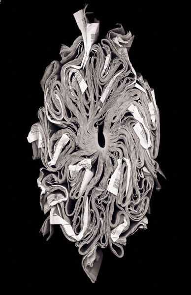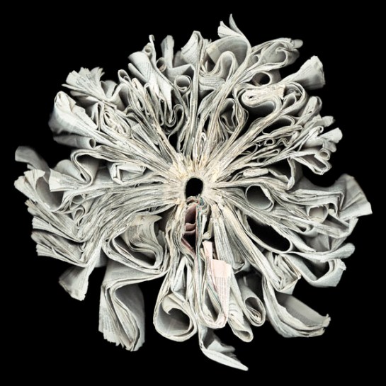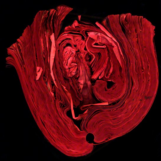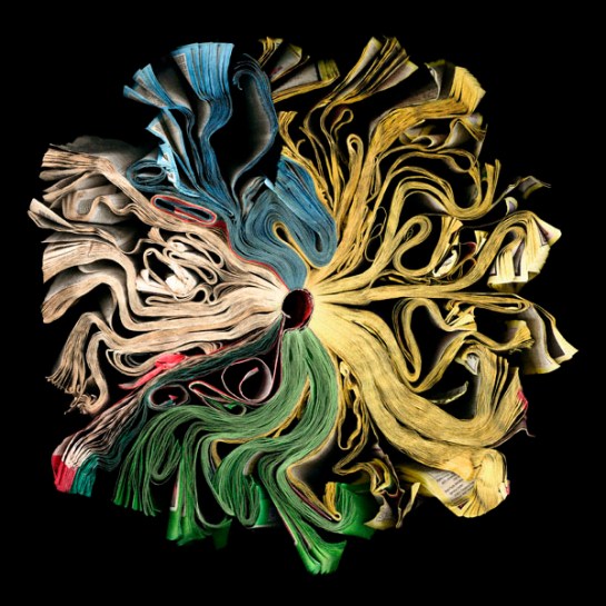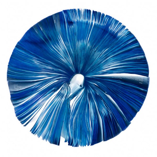 Attempting to blur the line between objects, sculpture, and photography, Cara Barer manipulates discarded books into strange origami like sculptures by changing their hardbound appearances. She photographs the objects in a state of flux and arrives at her final images through chance and experimentation.