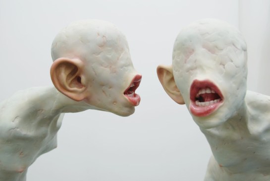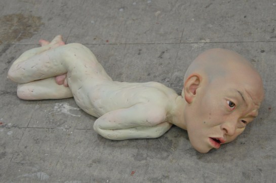 Seoul-based artist Choi Xoo Ang is an artist who sculpts concrete bodies. And these bodies seem eerily and sometimes hideously real. His figures, made of oil on resin, use gestures that seem overstated to emphasize their existence revealing such megalomaniacal symptoms. Choi is known for using art as a way to grasp the world pathologically. From Vegetated State to Islet of Asperger, his sculptures vividly detail the excesses and individual as it relates to each figure. Choi takes everyday characters — such as the beggar, the wing of hands, the big nosed man or the gossip spreading rumors — and exaggerates, abbreviates, and modifies their actions exponentially to shed light on how an individual’s existence, deeds, and consciousness influence society and others.