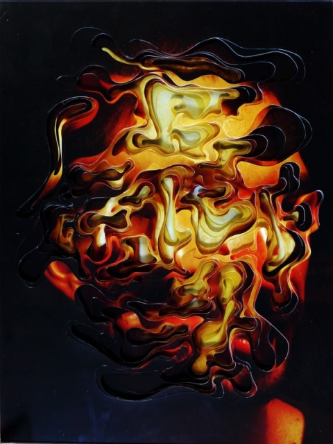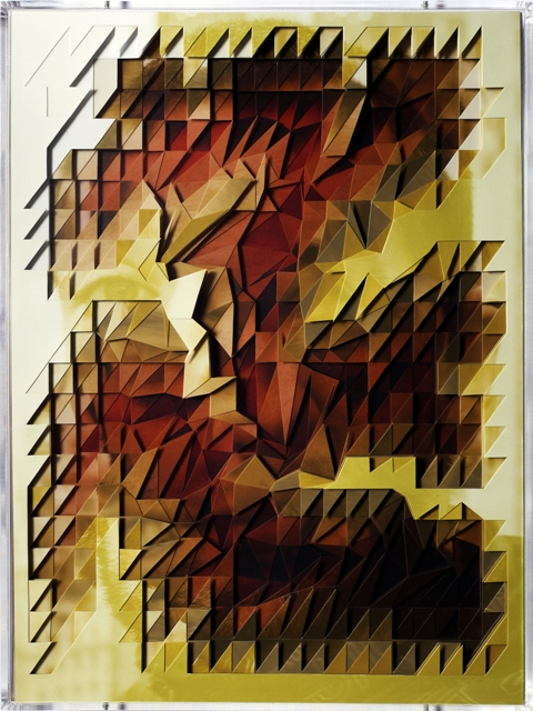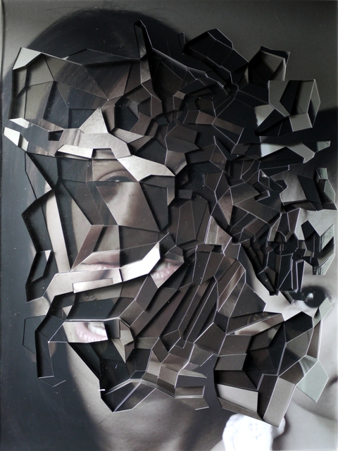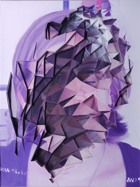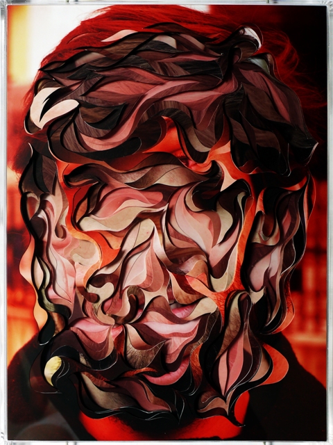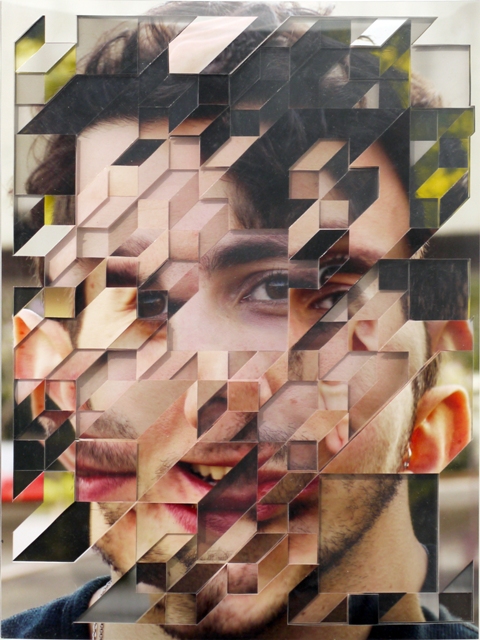 Just when you think you have seen about all you could bear from the collage trend you stumble upon Lucas Simoes, an artist/architect out of Sao Paulo, Brazil who creates bizarrely wonderful portraits using 10 layers of cut-out photographs. Simoes has a unique way of capturing his portraits, he starts out by listening to music on his headphones, with songs that are pre-chosen for him by his friends. Then he photographs and carefully captures the facial expressions of his friends, while they each reveal to him an intimate secret. He also asks each one to identify a color for their secret, to which determine the color for his final portraits. But these amazing pieces look as complex as they do because he cuts and overlaps about 10 different portraits of each person until they takes a life of its own. Some of his figures are identifiable but others blur the line of obscurity and into the realm of pixels as they all possess great levels of precision, pattern and shape.