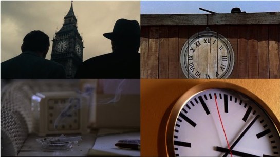 For me, the weirdest effect of The Clock is that the time references became fictional – I stopped noticing that they were telling me exactly what the time actually was. They became a series of numbers which ordered the mosaic of moods and moments. And then, slowly but surely, I stopped noticing the time entirely. I just drank it in, just accepted the juxtapositions.]