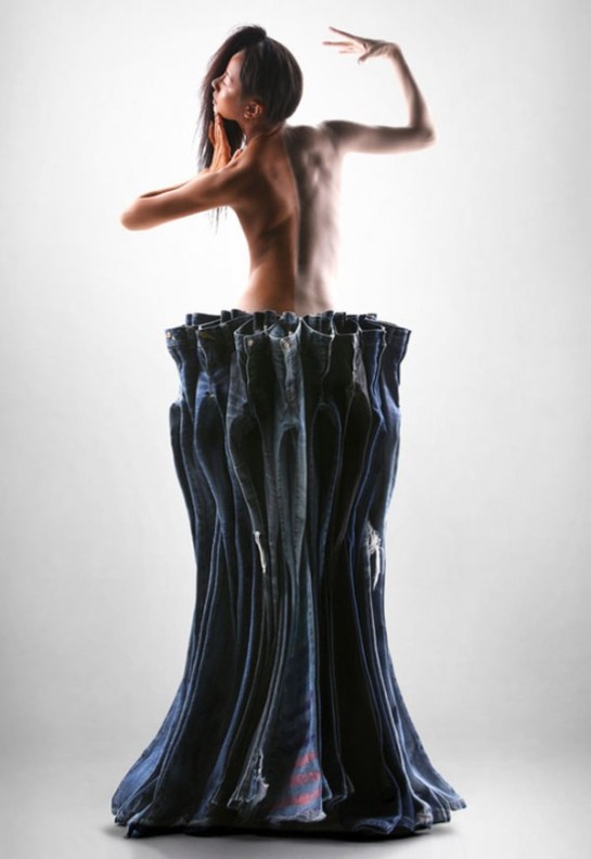 Case in point is the latest from Taiwanese collective BlanQ, a series of sculptures created by Jeffrey Wang in collaboration with Levi’s and the Fubon Art Foundation. By using just safety pins and forgoing any cutting or sewing, each piece maintains the integrity of each original pair of denim. This project is exemplary of the underlying concept behind all BlanQ projects, which focus on moving beyond aesthetics and integrating meaning and concept into each work of art. Isn’t it brilliant?