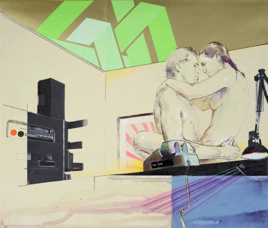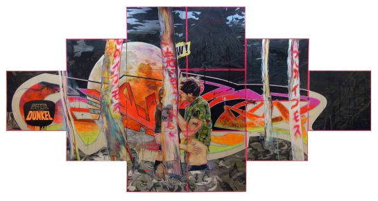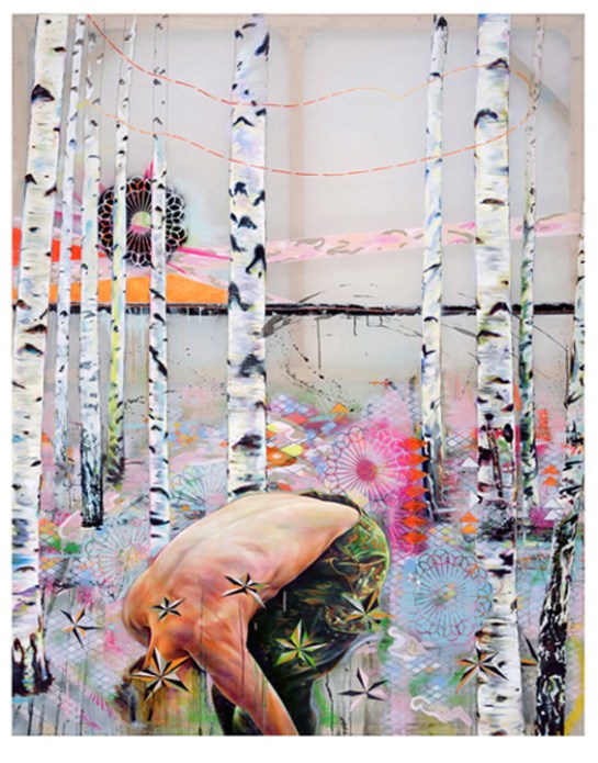 The works by Anne Wölk are like a cinematic scenery. She uses film stills as her main source of inspiration to create surreal paintings that are in a permanent state of flux. Her paintings resemble a cosmos of abstraction, details, and colors, while her drawings play with text, figures, space and collage. Her works have a unique lure for me with it’s neon contrasts, structural compositions and use of medium. Her narrative paintings almost remind me a bit of Esteban Cabeza de Baca’s art, check em’ out!