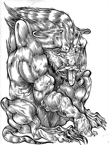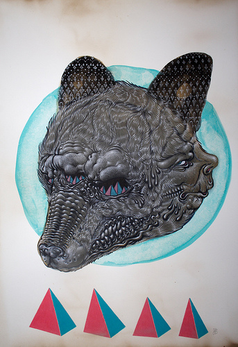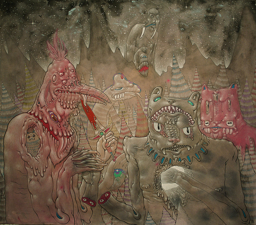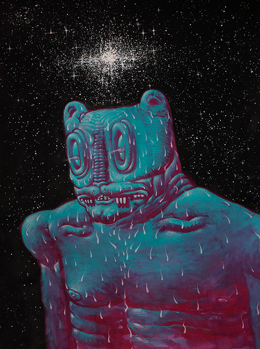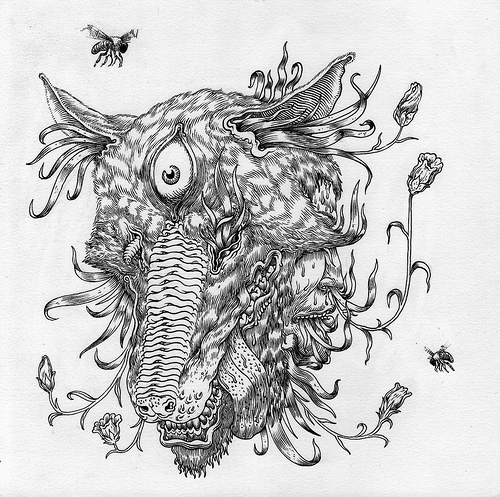 Balmer has an illustrative style that I admire. Whether it be drawings of cat-men or bird-planes, he maintains a sorbet of colors, delicate line work, and the oozing/gushing of jungles, outer space, and cat-men with their faces crushed.