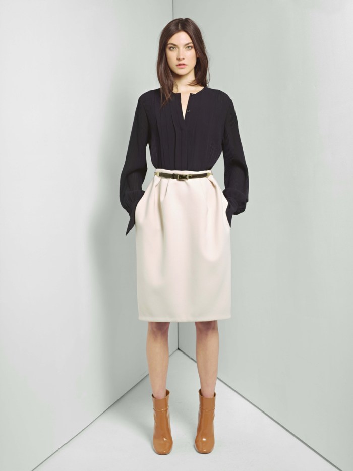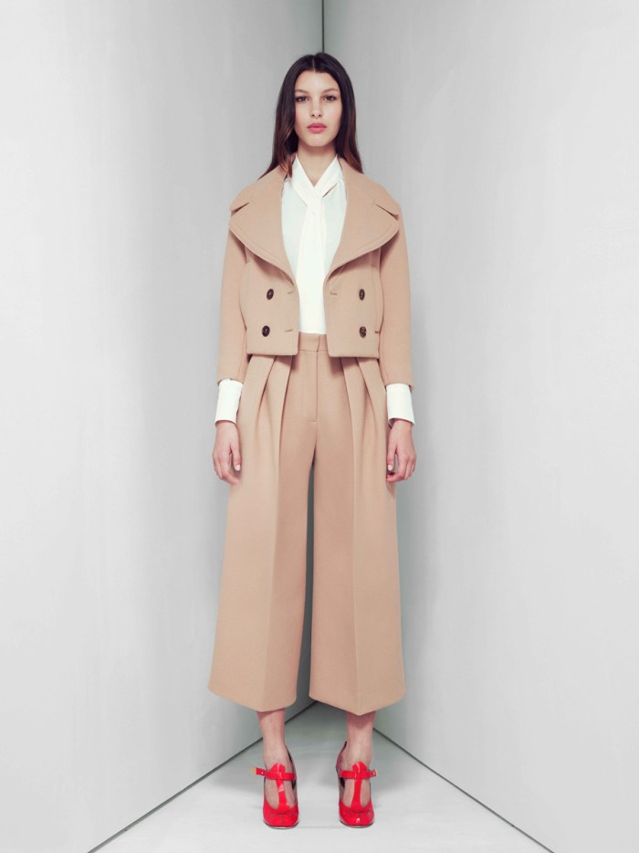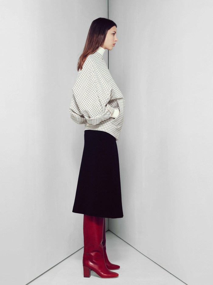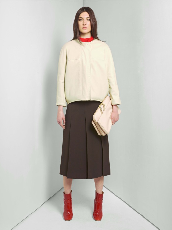 Sleek elongated separates, crimson oranges, high-waisted pencil skirts, shrunken blazers, and skinny cigarette pants. Inspired by the visual archive of American fashion photographer Garry Winogrand’s candid shots of the Manhattan’s stylish city women weaving their way through crosstown traffic, Chloé’s creative director Claire Waight Keller took cues from the minimalist and maximalist aesthetics that defined those respective eras. The British designer successfully set pace for a multi-dimensional, on-the-street ready looks with seemingly opposing proportions for pre-fall.