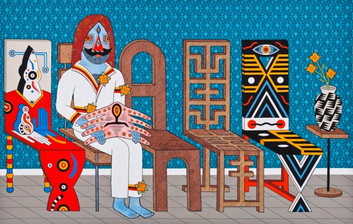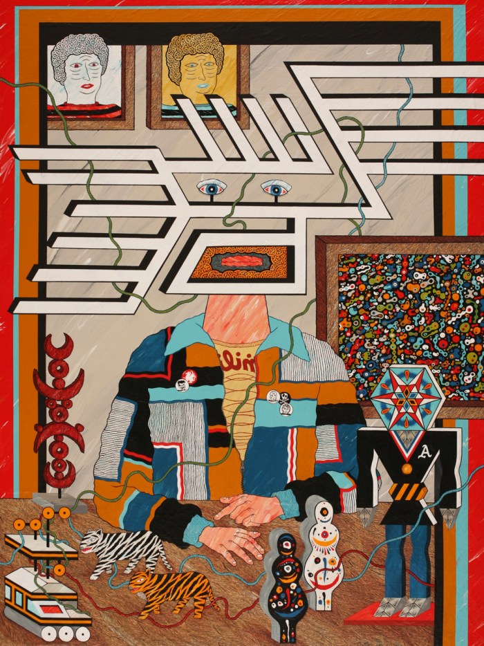 Matt Leines, whose work takes influence from Hermetic Sciences to Hulk Hogan and Harald Hardrada to He-Man. His drawings show us a glimpse into a fantasy world full of carefully depicted arrangement’s of strange beasts and mustached men. Leines presents himself as an insider in an outsider’s world, serving as both creator and narrator. His emphatically meticulous lines speak to surreal dream escapes all the while maintaining a folklore aesthetic. Much can be said about orange blossoms.
