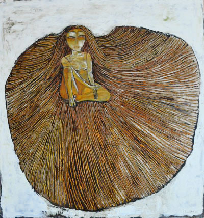 In spirit of Mongolian New Years, I present to you Munkhtsetseg Jalkhaajav, one of my most admired female Mongolian artists. I first saw her work in a Mongolian art catalog, and I was truly blown away by her intuitive and emotive sense of painting. Jalkhaajav’s concepts are also of utmost interest, depicting always, a woman, the Mongolian woman, a contemporary woman, the universal woman. Not many woman artists are admired in Mongolia, the culture still pertains to a very male dominant society and even in the arts arena, woman artists struggle to be heard. But Jalhaajav talents have catapulted her to international stardom within the span of the last few years, her woman in red gas mask sculpture/installation was recently featured in National Geographic Magazine as the forefront image and a controversial depiction of the emerging contemporary Mongolian society. Jalkhaajav is currently represented by the Teo+Namfah Gallery in Thailand.
