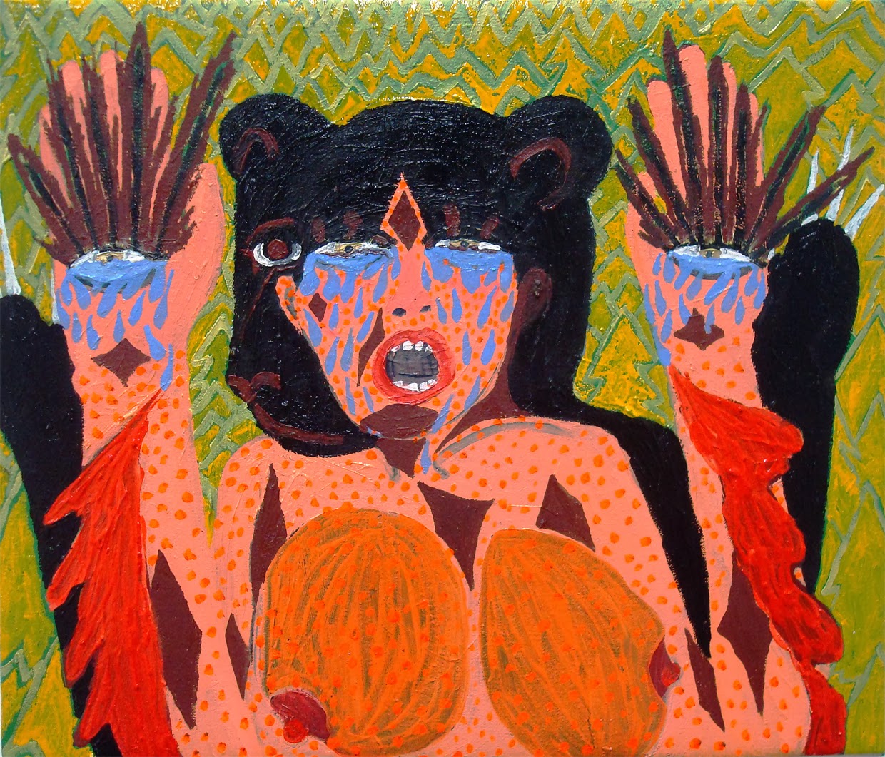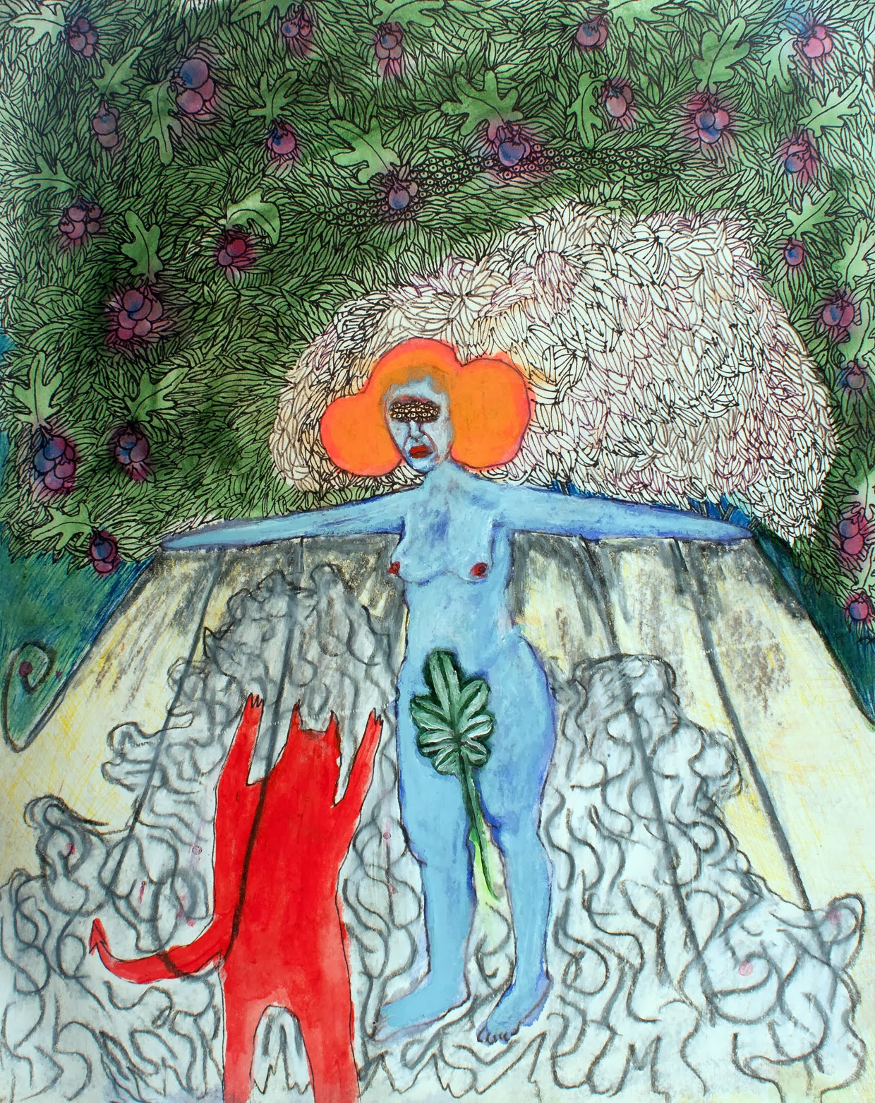 Haley Hughes was born in Paradise on the red planet of Mars. I don’t want to say too much because there is a rawness about her paint strokes and the wilderness of her interpretive imagination which do not require any explanation. I love her, what a talent. The semblance of textures, colors, the balance of rigid, the serene, the beautiful, the smooth, the barf. All intuition and sensitivity. Her figures and the mythical hybrid self portraits. What appeals most to me is the effortless freedom of her heart, she is not trying to be something, just doing, expressing. She hosts a blog, please see it.