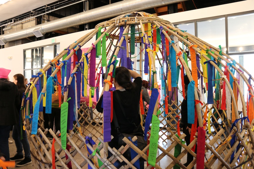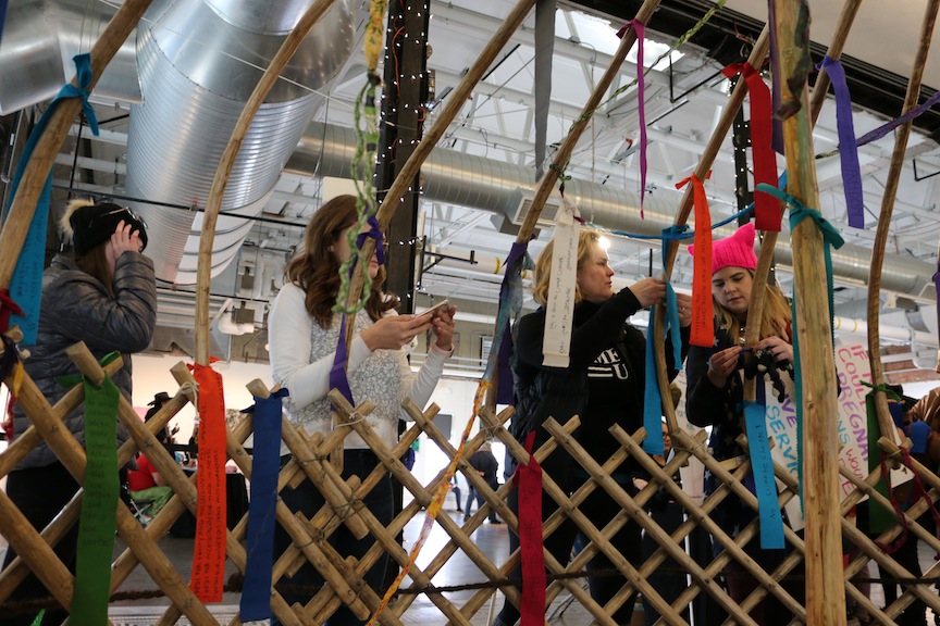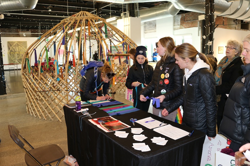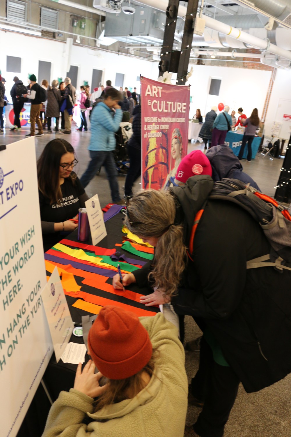 The wish ribbons made and collected from the workshops were featured as part of the “Dream Yurt” project in collaboration with the Mongolian Culture and Heritage Center of Colorado during the 2020 Womxn’s March Denver IMPACT Expo to soaring success. We had hundreds of particpants from the march make wish ribbons for the world and take part of the special project, collecting over 682 ribbons in total. The goal is to reach 1001 ribbons, we are almost there!