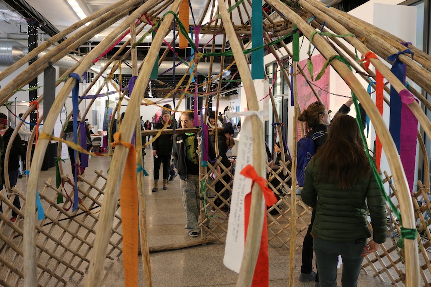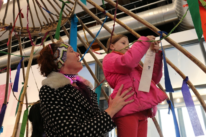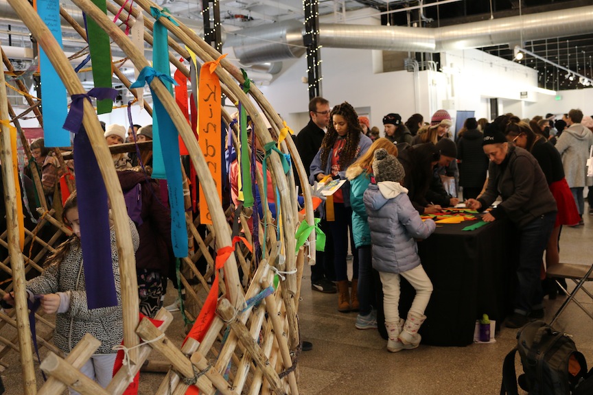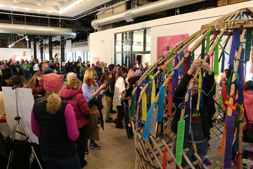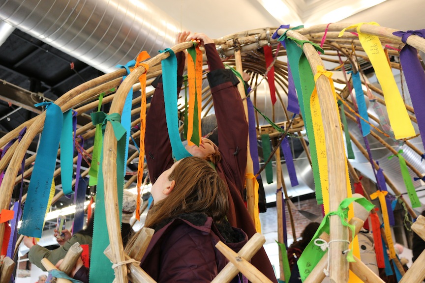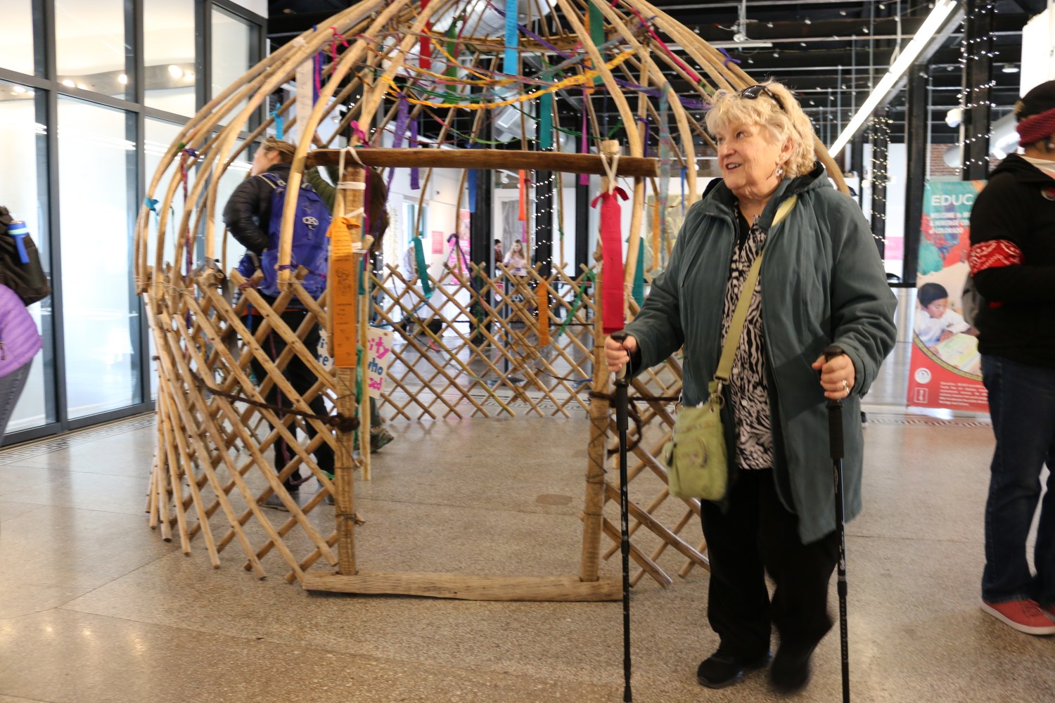 The “Dream Yurt” is a touring project designed to eradicate social barriers through the power of art and community, and in place celebrate kinship across our differences. By engaging/challenging systems of power, the project aims to transform systems of structured oppression and displacement while celebrating diversity, promoting social activism, equal justice, and inspiring social change. Dream Yurt invites participants to make “votive wish ribbons” which gets attached to a 200 year old Mongolian yurt from the Silk Road.