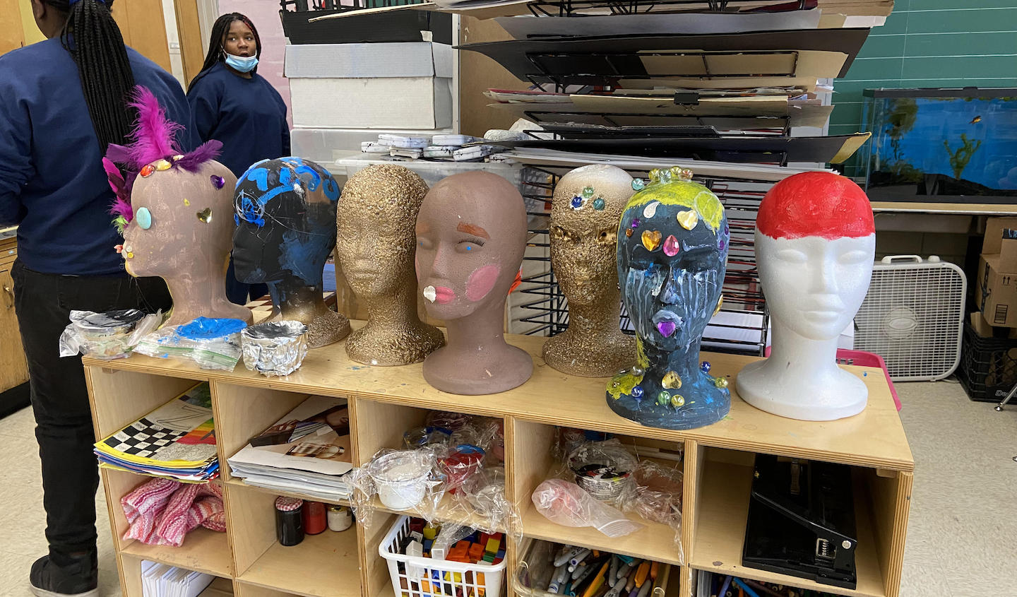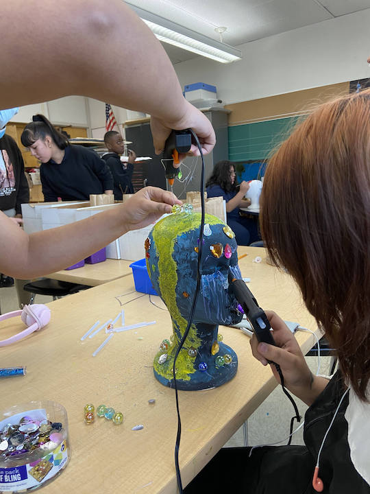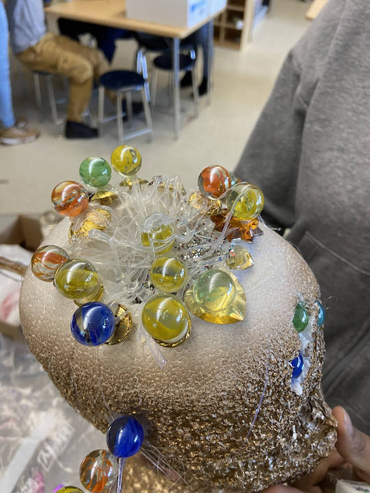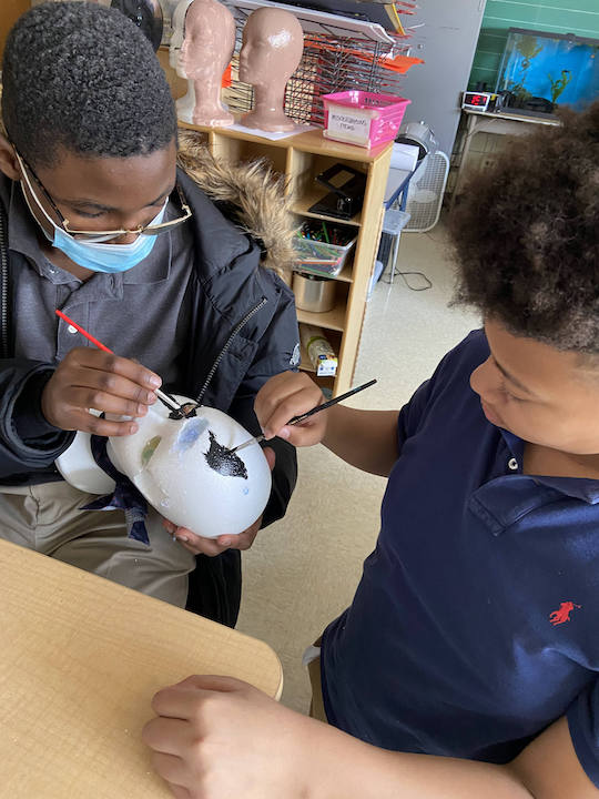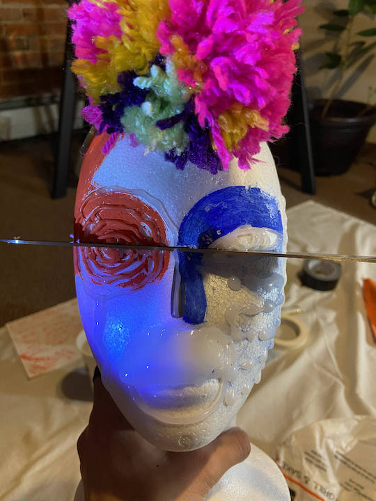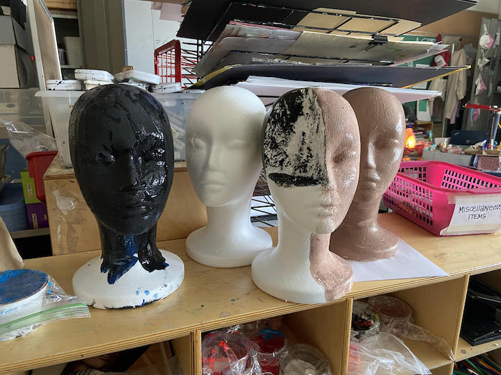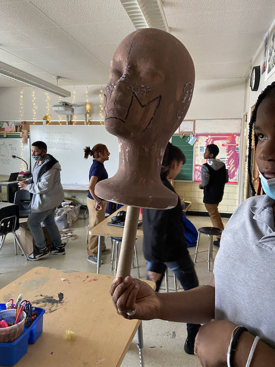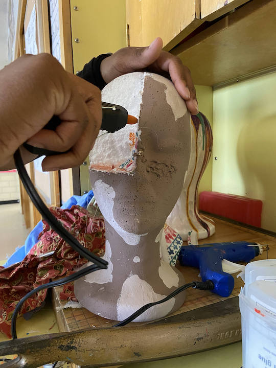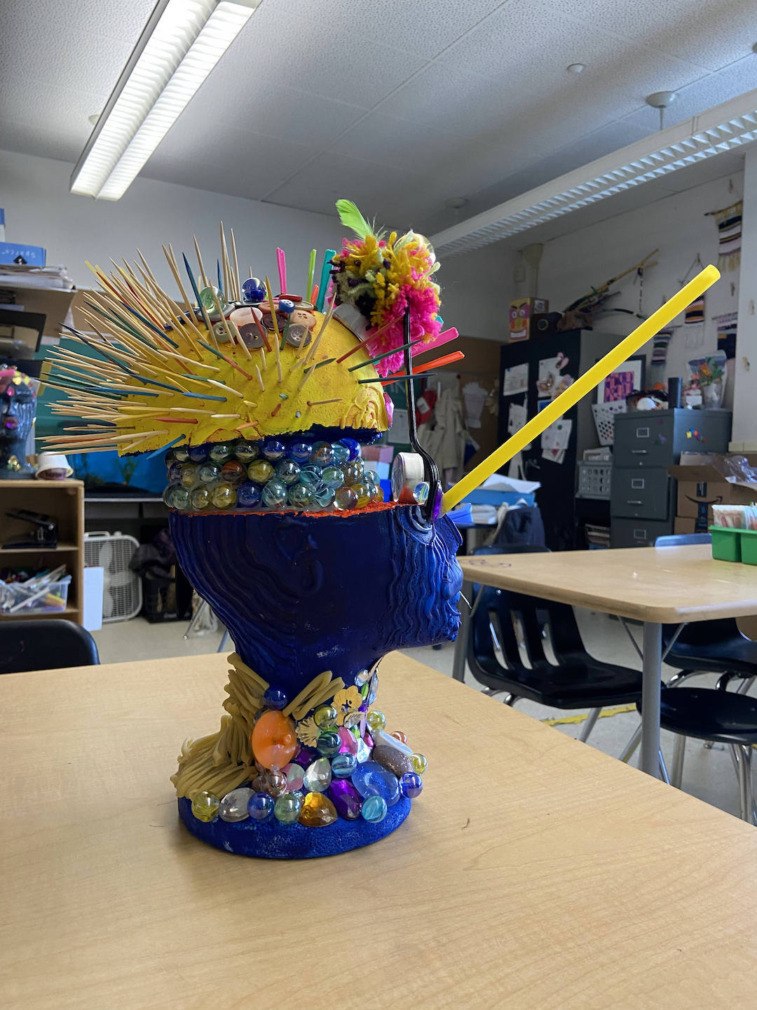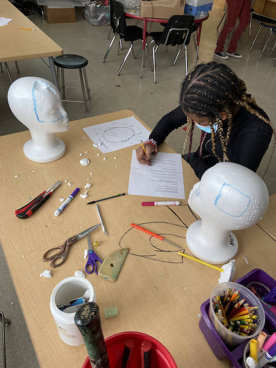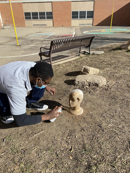 I am working with students to design symbolic self portrait sculptures using a malleable styrofoam base as a simulation of their face to express inner and outer most selves using a variety of mixed/natural materials to reference symbolic meaning and social messaging. The Styrofoam base provide a fun container where student can express a variety of voices, colors, opinions and individual social issues like race, identity, sexuality, family, culture, etc. Each sculpture represents a statement on how the pandemic has challenged and changed our youth generation.