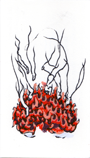 Mediums used: graphic pen, gel pen, masking tape, collage, blood, mechanical pencil, alteration of original surface by ways of cutting, obliteration, subtraction and addition.