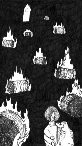 Mediums used: graphic pen, gel pen, masking tape, collage, blood, mechanical pencil, alteration of original surface by ways of cutting, obliteration, subtraction and addition.