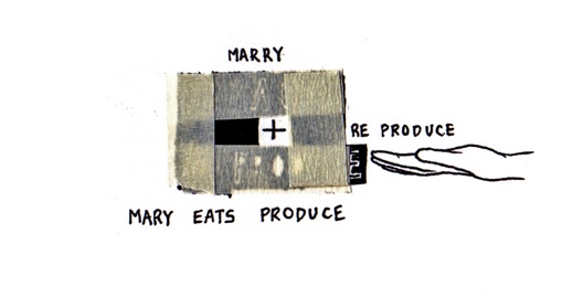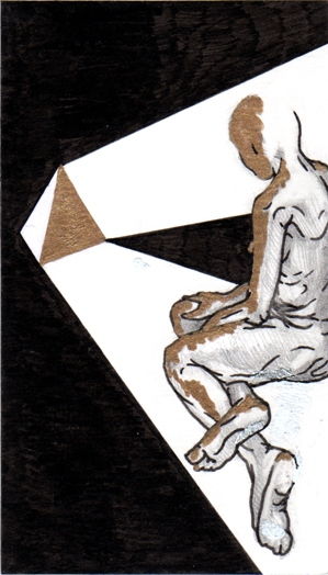 Mediums used: graphic pen, gel pen, masking tape, collage, blood, mechanical pencil, alteration of original surface by ways of cutting, obliteration, subtraction and addition.