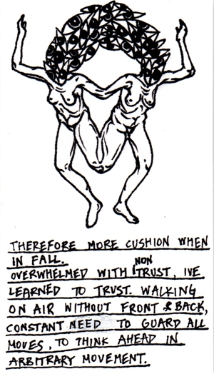 Descriptors without a place – place which dis(places) all things in it. Victory of fragility. Together is only the together of some vanishing marks. Together is enough. The intensity of persuaded projections.